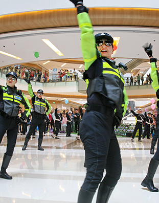 新颖方式宣传交通安全